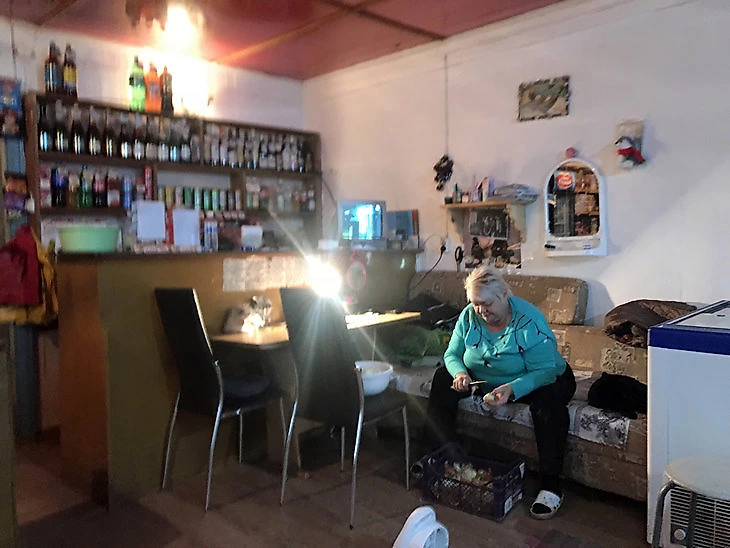 Единственное открытое здание – магазин, куда за нами вбежал маленький пес. Нам были не рады даже здесь. На прилавке – стандартный набор: сладости, газировка, молочка, замороженные овощи и фрукты, шампуни, сувениры. Товары периодически привозит катер. Но когда экстренная ситуация – например, обострение болезни – надо вызывать вертолет.
