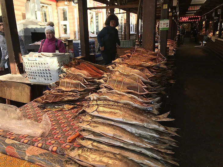 Но рыбные базары переполнены. Свежая рыба, холодное и горячее копчение. Омуль, хариус, щука, окунь, лещ. Дмитрий учит определять качество: «Если целый хвост – 80%, что рыба свежая и не из замороженной партии».