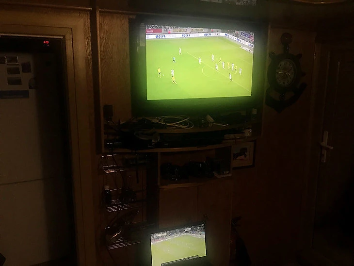 Нас качало, потому что мы смотрели футбол на воде. Судно шевелилось, постукивая бортом о причал. Светящийся экран, свежий Байкал за иллюминатором и чай.