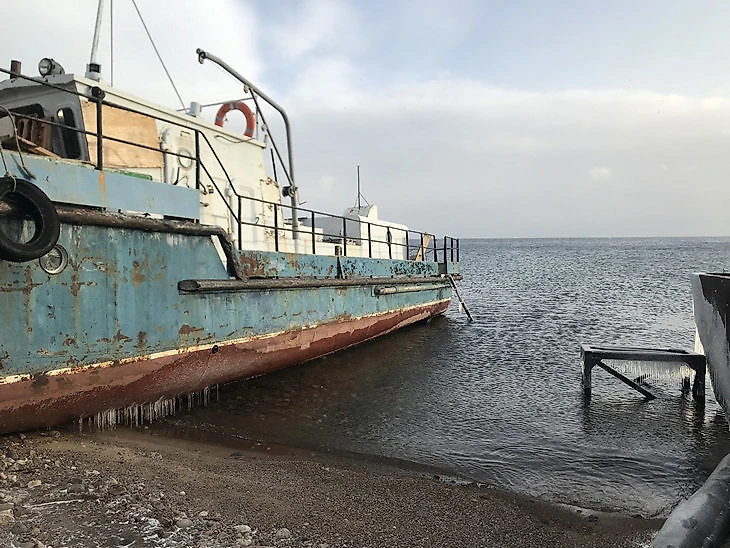 Антураж рыбной деревни дополняют перевернутые лодки и ржавый катер.