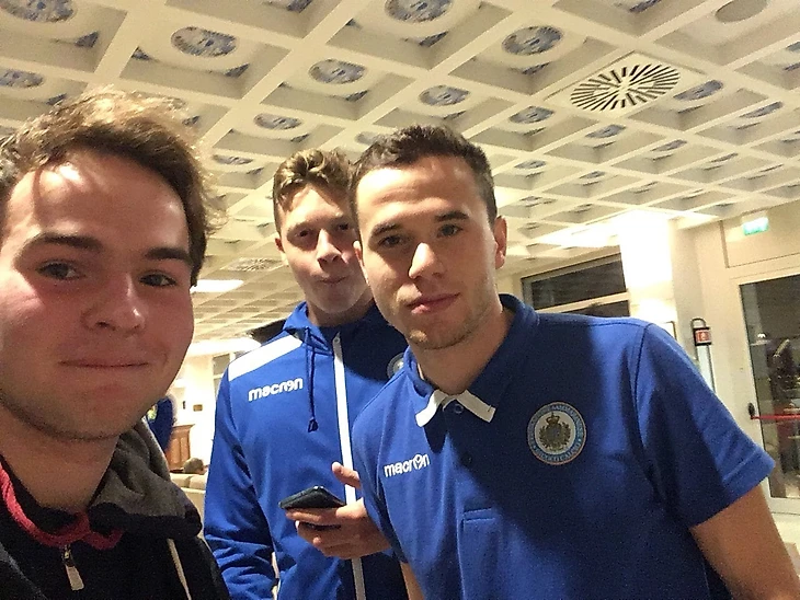 В отеле решил сходить в бассейн, долго не мог его найти и подошел спросить у двух ребят в спортивных костюмах, они любезно подсказали. Оказалось, это игроки Сан-Марино, так что я пожелал им удачи, они поулыбались и тоже что-то ответили. Перед выходом на стадион встретил всю их сборную в столовой и сделал фото с «звездами».