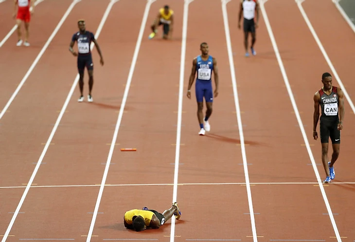 Дождавшись финиша, на дорожку высыпали врачи – Болт вскоре поднялся, ужасно расстроенный. И босиком поковылял под трибуны – вряд ли можно было завершить карьеру хуже.