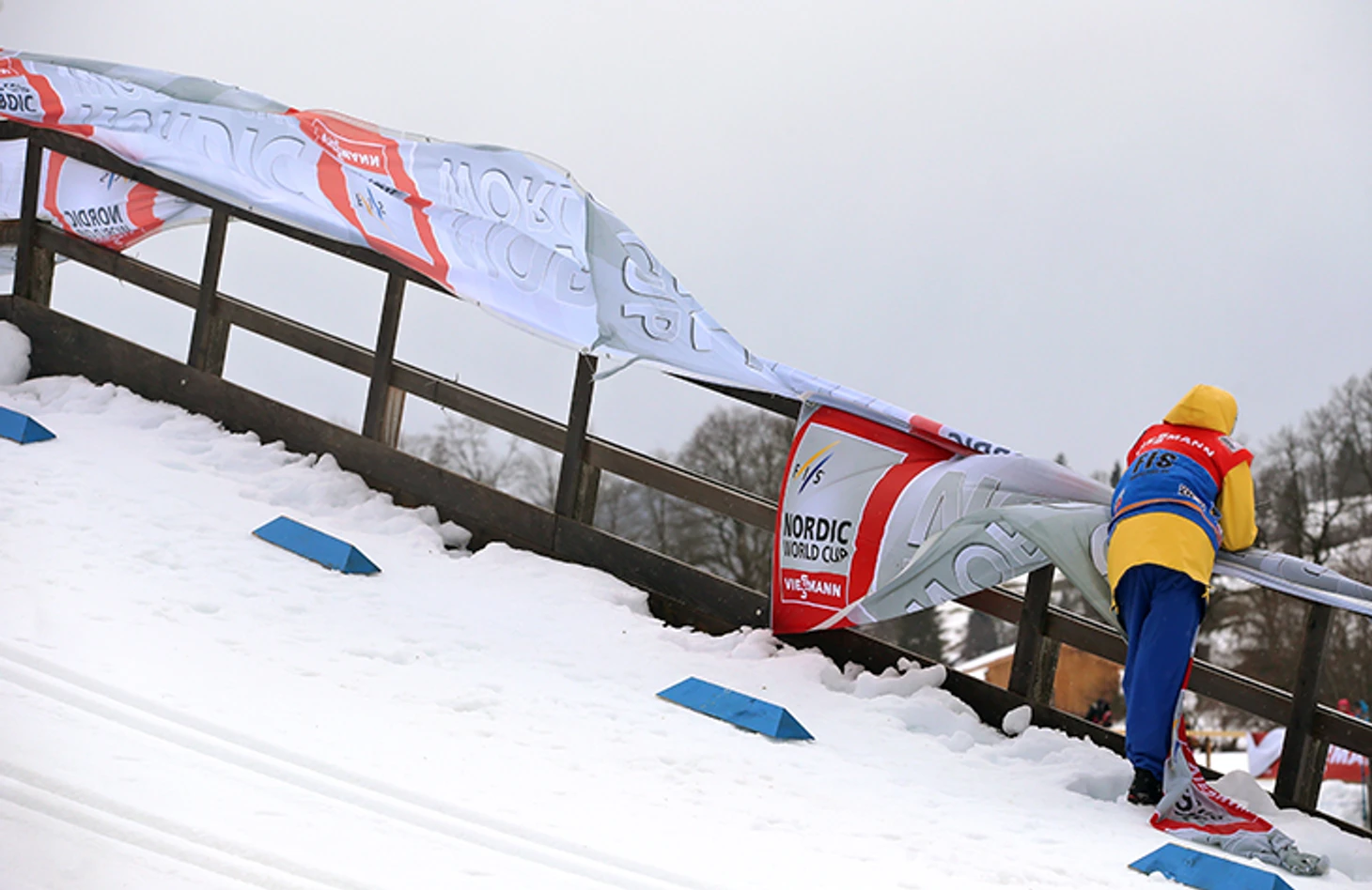 Весь день стадион поливало дождем (осадки не прекратятся и завтра) – это неприятно, но терпимо. Куда серьезнее лыжникам помешал шквальный ветер – с самого утра между 20 и 30 м/с, а это уже опасно для всех, кто находился на арене.