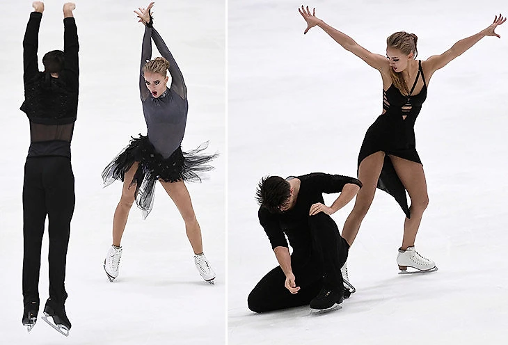 • Очень понравились костюмы Степановой и Букина. Ритм-танец – острое, небанальное платье, построенное на контрастах объемов и фактур. В произвольной программе платье графичное, даже каллиграфичное. Мне всегда нравится, когда обе программы объединены каким-то неуловимым авторским почерком; и непонятно, что это – работа художника или красота и чувство стиля спортсменов.
