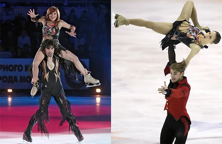 Яна Хохлова и Сергей Новицкий, 2009 год (слева), Кристина Астахова и Алексей Рогонов, 2015 год (справа)