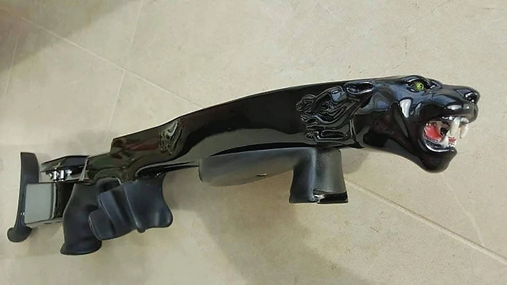 Ложе с головой дракона изготовили в двух экземплярах из грецкого ореха. На рабочее нанесли аэрографию – ее все видели в гонках. А запасное пропитали маслом, потому что оно имело очень красивую, насыщенную текстуру, играло пятью цветами – грех такую красоту прятать под краской.