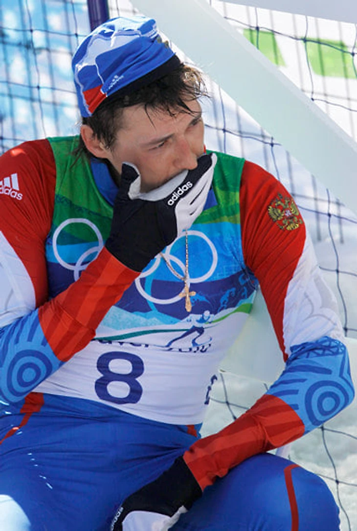 Олимпиада-2010, скиатлон (15 км классикой, 15 км коньком). Сразу после переобувания Юхан Олссон ушел в отрыв, который быстро вырос до 30 секунд. Группу долго тащил Александр Легков, за пару км до финиша его терпение лопнуло.