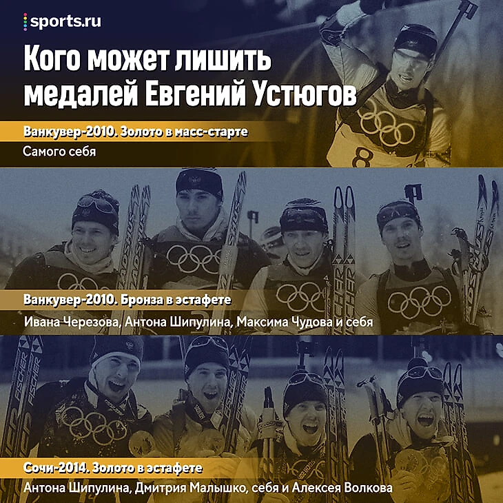 • эстафетное золото в Сочи-2014. Устюгова поставили на второй этап, он провел далеко не безупречный отрезок, но оставил команду в игре. Олимпийский титул вместе с Евгением рискуют потерять Алексей Волков, Дмитрий Малышко и Антон Шипулин.