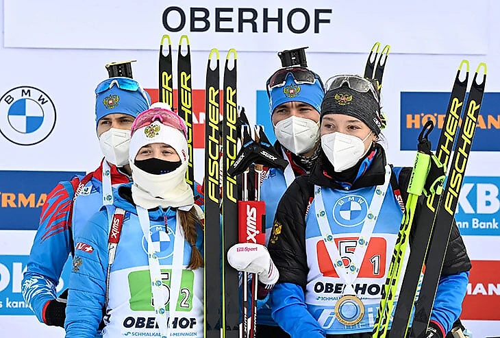 Ульяна Кайшева, Светлана Миронова, Александр Логинов и Эдуард Латыпов выиграли в Оберхофе смешанную эстафету, лидируя с экватора, не дрожа на стрельбе, раскидывая элитных соперников на финише.