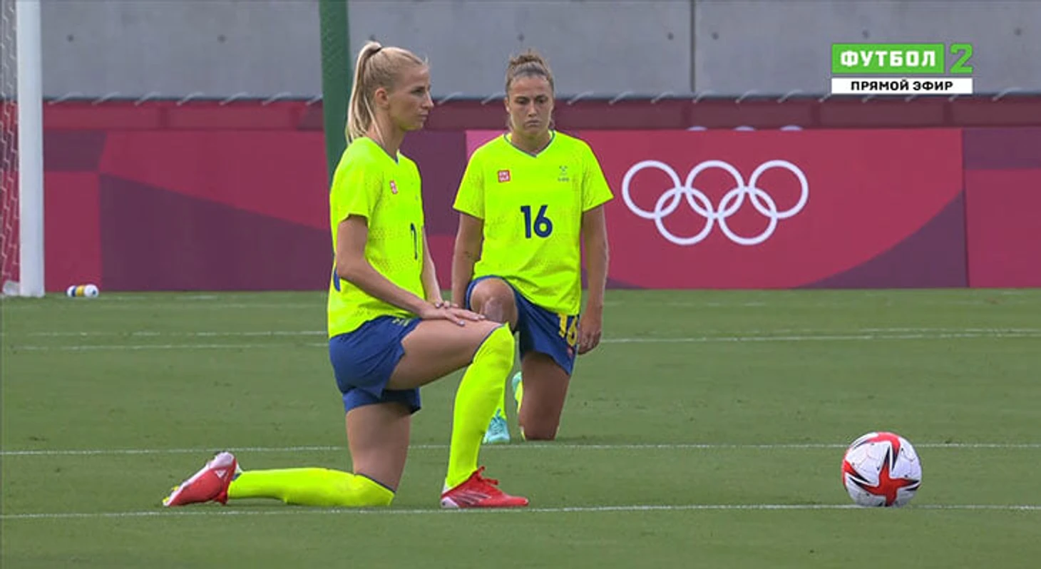 Поскольку темы ковида и аскетичного устройства олимпийской деревни быстро зашли в тупик, фокус теперь – на политических жестах. Которые: а) МОК разрешил перед самыми Играми – с ограничениями, о них ниже; б) первыми показали футболистки – сначала Великобритании и Чили, следом – США и Швеции.