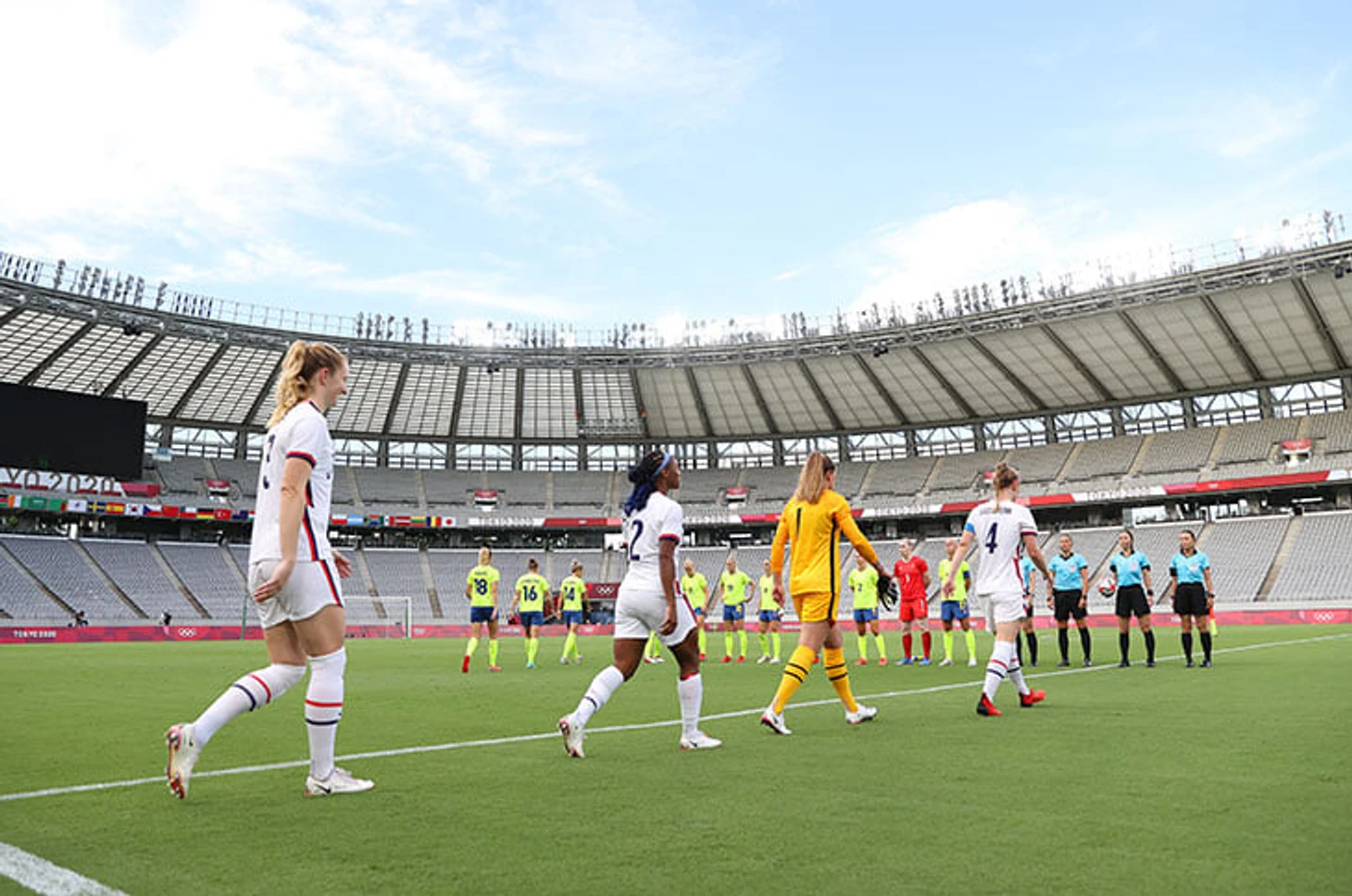 Стадион вмещает 48 тысяч зрителей, но на матче США – Швеция, открывавшем футбольный турнир в Токио, было в лучшем случае 200 человек – около 100 волонтеров, официальные гости МОК и активные шведы, растянувшие на центральной трибуне сразу три желто-синих флага.