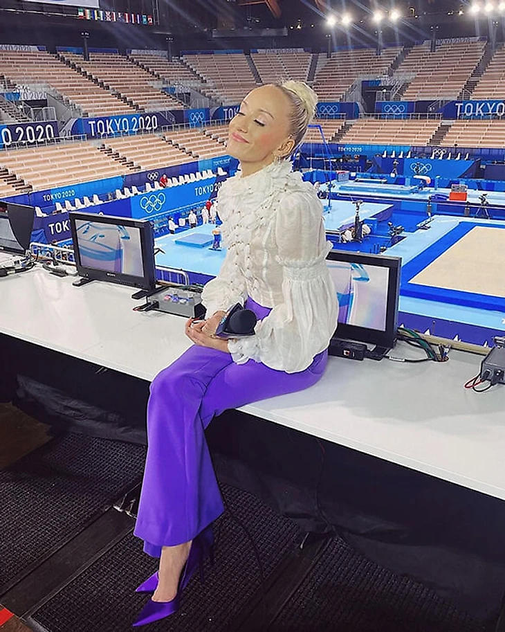 В дни женской гимнастики Ariake Gymnastics Centre – американский. Здесь гуляет английская речь, пресс-центр битком, а на трибуны пускают не только по аккредитациям, но и по билетам. Наконец, ради студии NBC в Токио прилетела Настя Люкин, олимпийская чемпионка-2008.