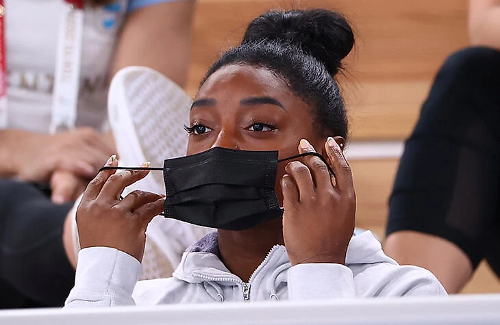 За всеми раскладами грустная Симона Байлс наблюдала с трибуны. Сложно сказать, что творилось в ее душе, но даже за черной маской трудно было не считать желание поскорее скрыться из Токио.
