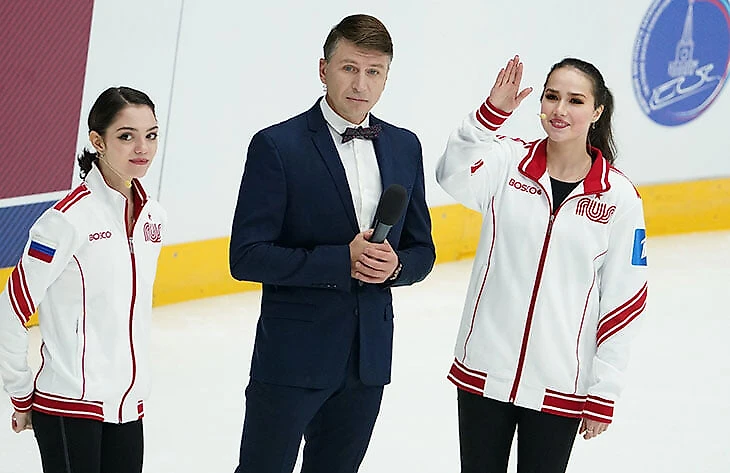 1) На днях школа «Самбо-70», которую обе заканчивали, отметила юбилей в Кремле. Эпатажный директор Ренат Лайшев сначала анонсировал Алину и Женю как ведущих в паре. Потом оказалось, что на сцене требуется формат «мужчина-женщина», и Лайшев выбрал Медведеву вот с такой мотивировкой: «У Медведевой дикция лучше, чем у Загитовой. Она девочка московская».