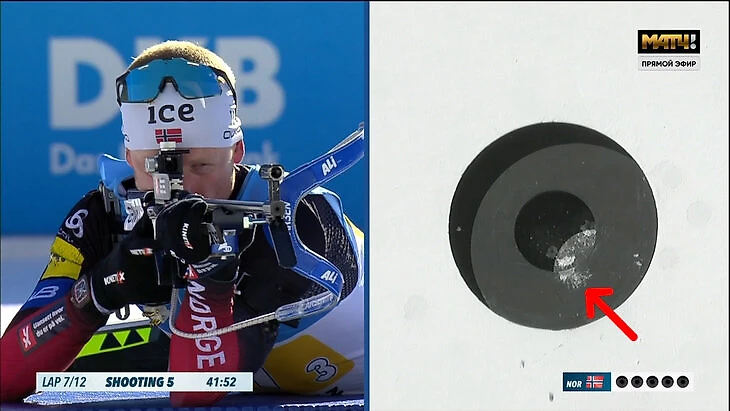 Давайте не исключать и минимальное везение. Пересмотрите лежку Йоханнеса Бо на третьем этапе – вся стрельба на 4-6 часов, причем прошли два таких габарита… Это называется повезло, какие факторы ни приводи – ветер, солнце, изготовка. Повезло. Еще 2 мм в этом направлении – и из пяти закрыл бы в лучшем случае три, а это уже совсем другой расклад.