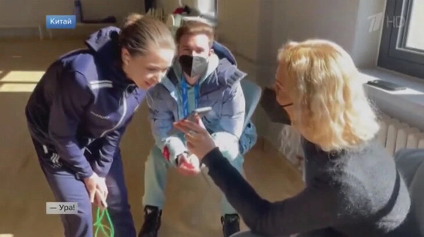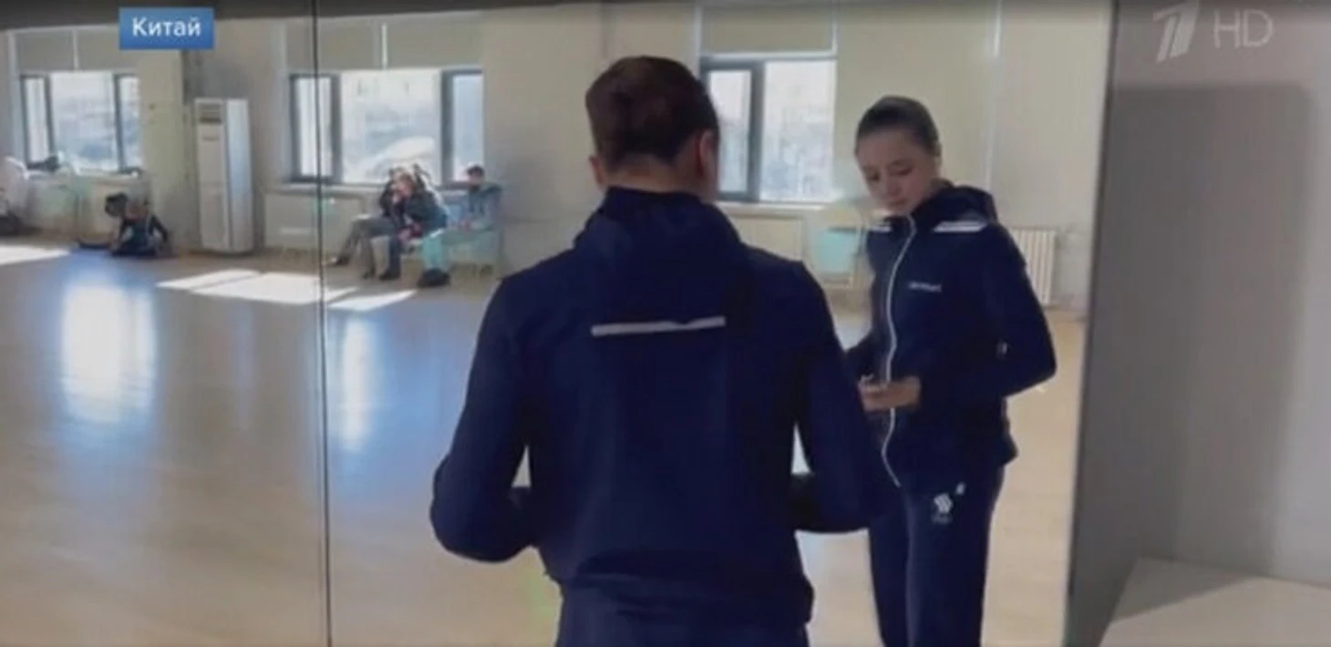 Первый канал показал кадры, когда тренер Этери Тутберидзе делится хорошей новостью с ученицей – та восприняла внешне спокойно, лишь потрясывая телефоном, но затем, чуть отойдя в сторону, к зеркалам, прослезилась.