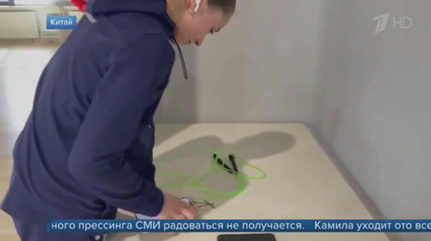 Вот он – момент, когда Валиева читает новости в смартфоне: