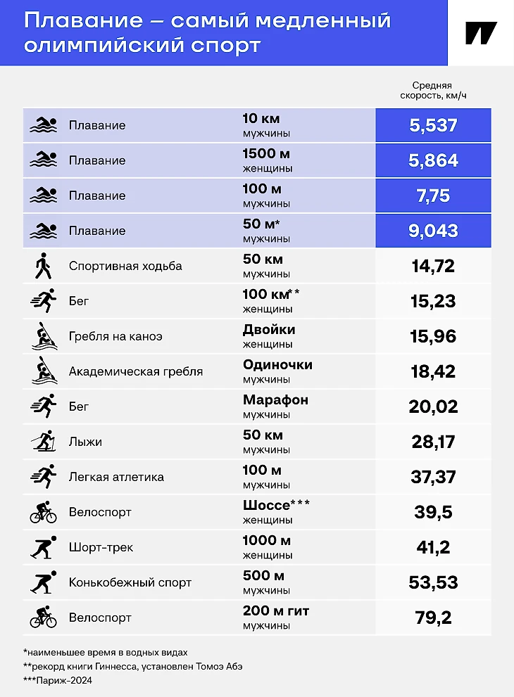Плавание – самый медленный спорт. Сравнили с ходьбой, марафонским бегом и греблей