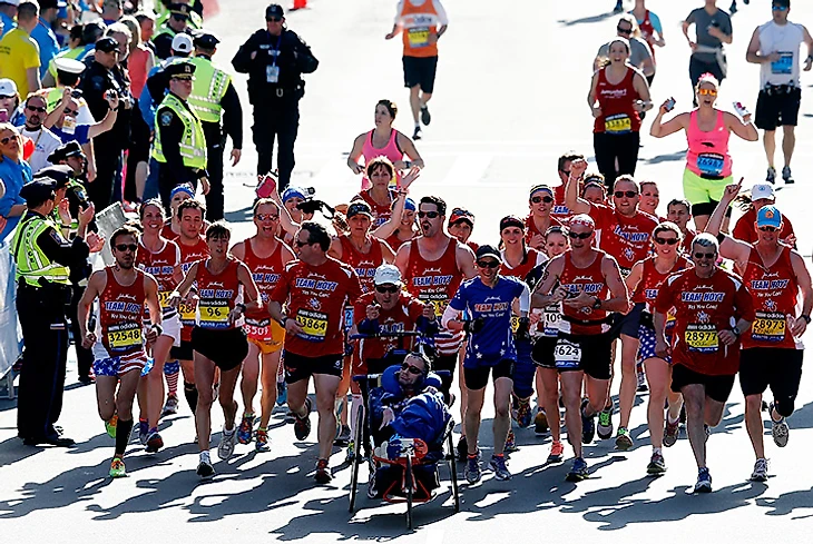 Первый Бостонский марафон отец и сын Хойты преодолели в 1981-м. Дик, кативший сына в инвалидном кресле, позднее признавал, что никогда не участвовал в соревнованиях сложнее.