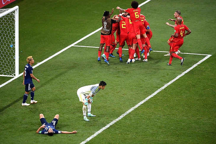 Одним из самых ярких матчей прошедшего Чемпионата Мира в России стала игра в Ростове-на-Дону между сборными Бельгии и Японии. Бельгийцы считались явными фаворитами и уже мысленно продвигали себя в четвертьфинал. Япония же имела совсем другие планы. Легкой прогулки для подопечных Роберто Мартинеса не получилось. К перерыву на табло горели скучные 0:0, но это была именно та ситуация, когда счет никак не отражал интересность матча. Японские «Самураи» после перерыва уже на 48-й минуте ошарашили весь футбольный мир: после ошибки Яна Вертонгена Генки Харагути открыл счет. Буквально чрез четыре минуты Такаси Инуи отличным ударом из-за штрафной удвоил преимущество, заставив молчать всю Бельгию. Правда, Японская сказка на этом закончилась. Бельгия обрушила на соперника всю свою мощь. На 69-й минуте забил, отличившийся с отметкой минус в первом голе Японцев, Ян Вертонген. Еще через 5 минут, после навеса Азара, Маруан Фелайни восстанавливает статус-кво. Не раз пришлось выручать свою команду вратарю Эйдзи Кавасиме, но даже он не смог спасти команду от поражения. За 25 секунд до окончания основного времени Бельгия провела молниеносную атаку, которую завершил Насер Шадли. 3:2 – Бельгия прошла в четвертьфинал Чемпионата Мира, по итогу которого завоевала бронзовые медали.