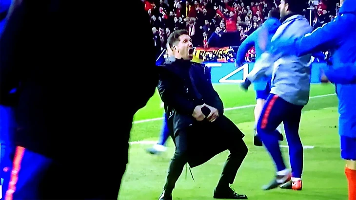 Что происходит, когда злят Роналду? Давайте начнем с достаточно свежего момента. 20 февраля 2019 года, в 1/8 финала ЛЧ испанский «Атлетико», усилиями защитников Хименеса и Година, одержал победу над Туринским «Юве» 2:0. Главный тренер матрасников Диего Симеоне достаточно эмоционально отпраздновал победу. По окончанию матча, бурно радовавшийся коач, продемонстрировал характер жест.