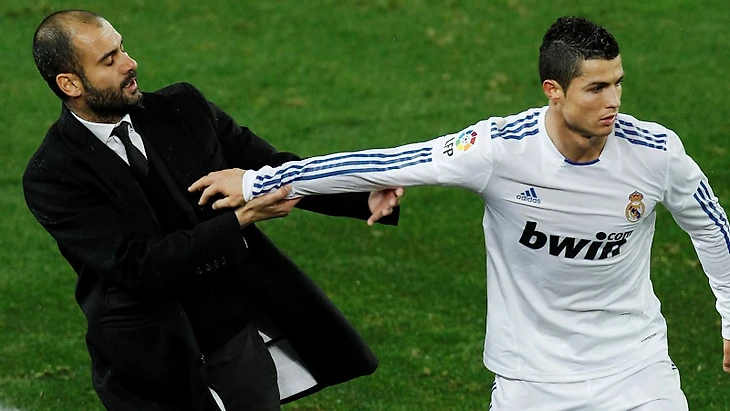 Грубость от Роналду была не редкая штука. Смотрите как в, откровенно говоря, плохом матче для «Реала», Рон поддался эмоциям толкнув Пепа Гвардиолу.