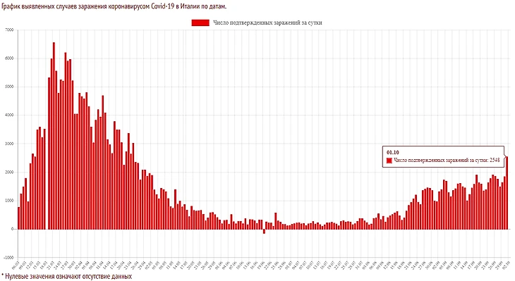 Самым важным показателем стоит считать общую статистику по Италии, которая более-менее стабилизировалась еще в начале лета: с июня по середину августа количество подтвержденных диагнозов не превышало 300 в день, и пик пандемии, безусловно, был пройден.