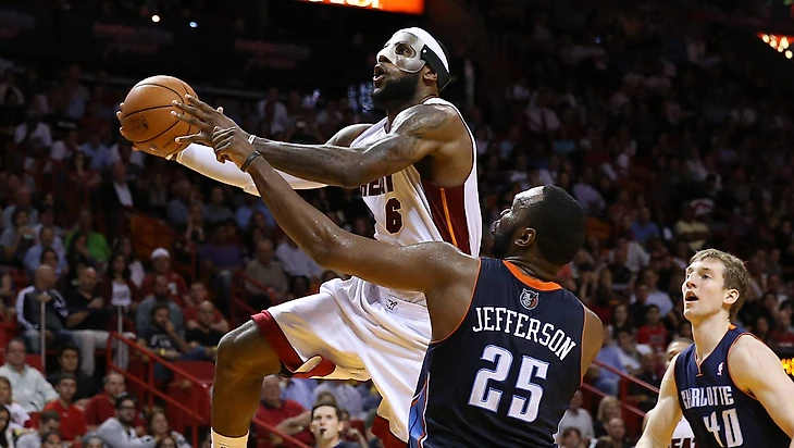 Матч с «Шарлотт Бобкэтс» 3 марта 2014 года, на который «Король» вышел в маске, стал знаменательным для него и его команды. 61 очко, 8 из 10 из-за дуги, 9 из 12 с линии и 22 из 33 с игры - исторический рекорд для «Майами» и персонально для Джеймса.
