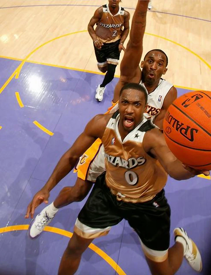 В отличии от Джордана, Аренас, никогда не мог похвастаться даже пятьюдесятью очкам за игру. Находящийся в прайме и два года подряд попадавший на Матч всех звезд «Агент Ноль» в концовке сезона 2006/07 получит травму колена и так и не вернется на прежний уровень результативности. Тем не менее по ходу сезона ему удалось обрушить ледяной душ из 60 очков со сводов «Стэйплс Центра» прямиком на головы Кобе и Ко. 16 очков в овертайме - до сих пор действующий рекорд лиги.