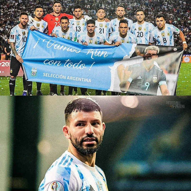 Перед матчем со сборной Бразилии сегодня утром, который завершился со счетом 0:0, сборная Аргентины поддержала своего товарища по команде Серхио Агуэро, который сейчас испытывает проблемы с сердцем.