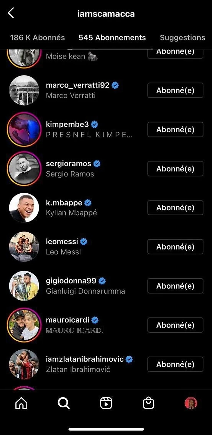 Нападающий клуба «Сассуоло» и сборной Италии Джанлука Скамакка подписался на игроков «ПСЖ» в Instagram.