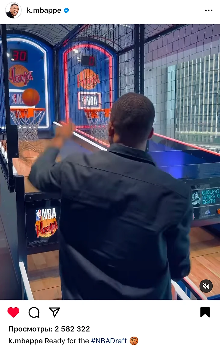 Мбаппе посетил церемонию Драфта НБА. И даже продемонстрировал свои баскетбольные таланты
