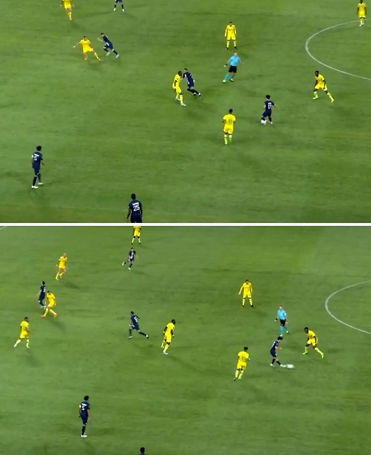 Однако в игре нового игрока «ПСЖ» не хватало смелости при атаках. Чтобы показать это, давайте рассмотрим на скриншотах, как действовал португалец в двух моментах.