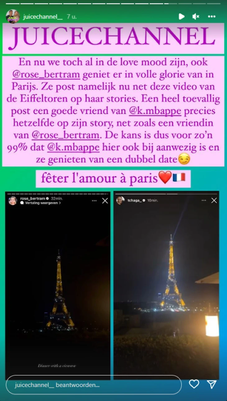 Издание Juicechannel провело небольшое расследование, чтобы доказать связь Роуз Бертрам, бывшей девушкой Грегори Ван дер Вила, и Килиана Мбаппе.