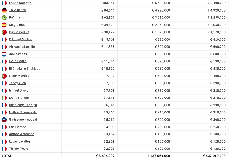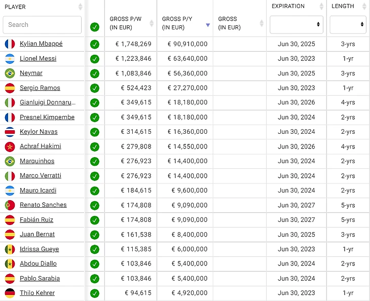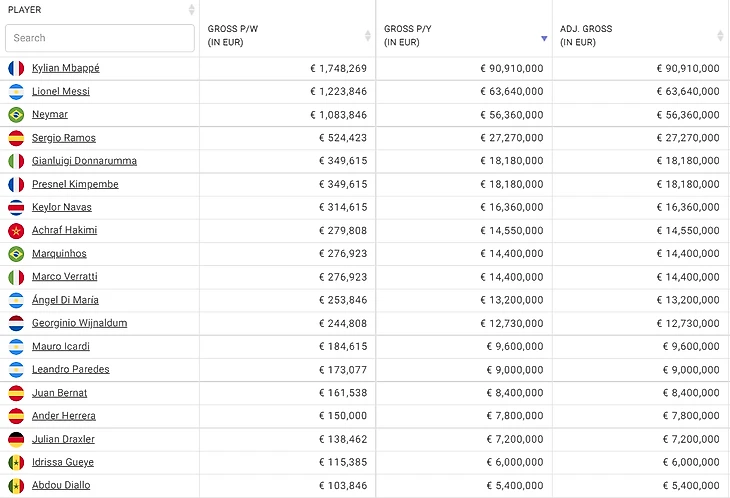 Сперва взглянем на зарплаты игроков «ПСЖ» в прошлом сезоне: