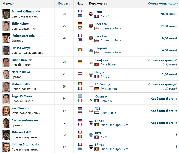 Давайте вспомним все трансфера парижского клуба, которые произошли этим летом: