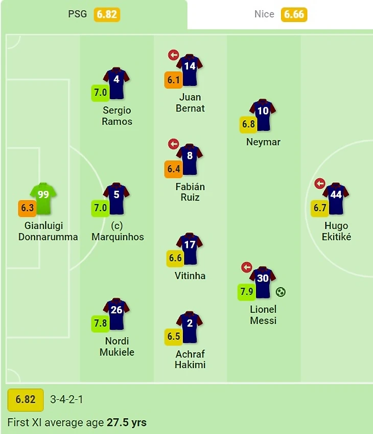 Месси – лучший, Бернат – худший: оценки игроков «ПСЖ» за матч против «Ниццы»