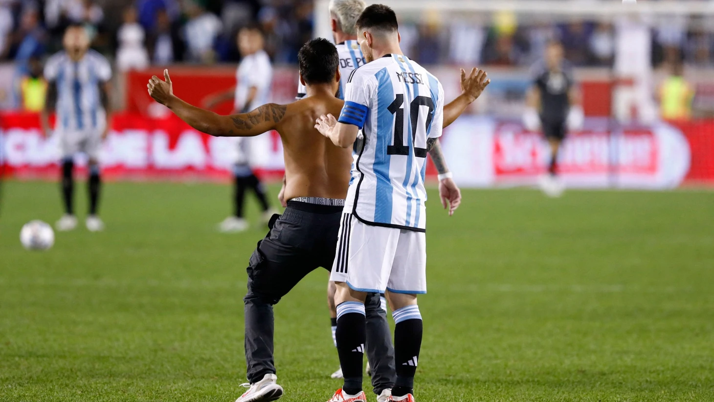 Прошляпили выбег на поле трёх болельщиков за матч, зато Месси чуть не пришибли заодно: