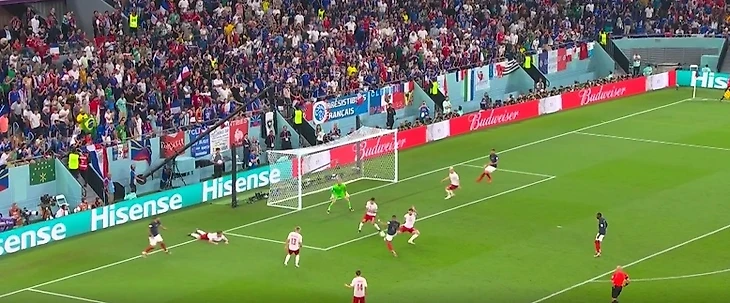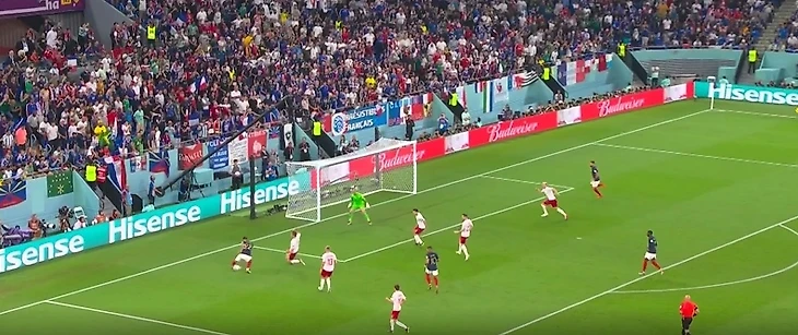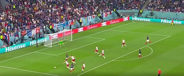 Второй гол случился благодаря Гризманну. Он отправил шикарный кросс прямиком во вратарскую, а Мбаппе в прыжке бедром внес мяч в сетку.