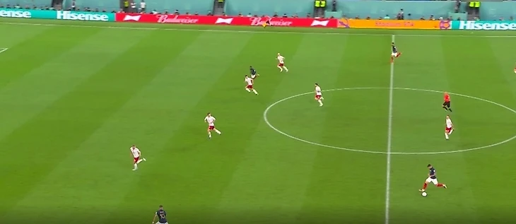 Первый мяч они организовали вместе с Тео Эрнандесом. Тот разогнался и протащил мяч до середины поля, передал его Мбаппе, который, разогнавшись, дотащил его до штрафной. Они сыграли в стеночку и нападающий попал в сетку с нескольких метров.