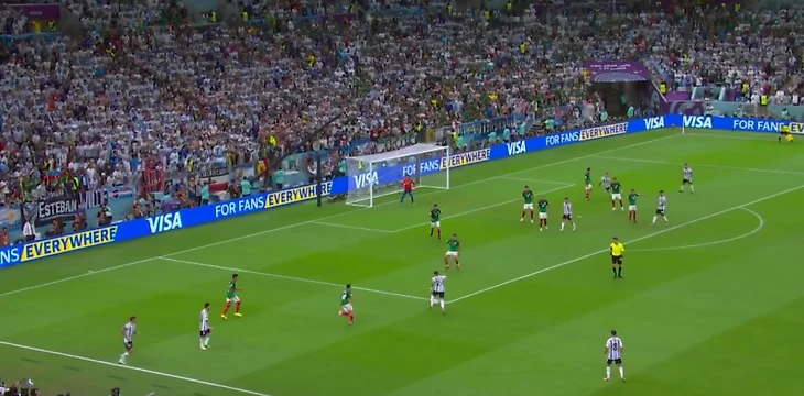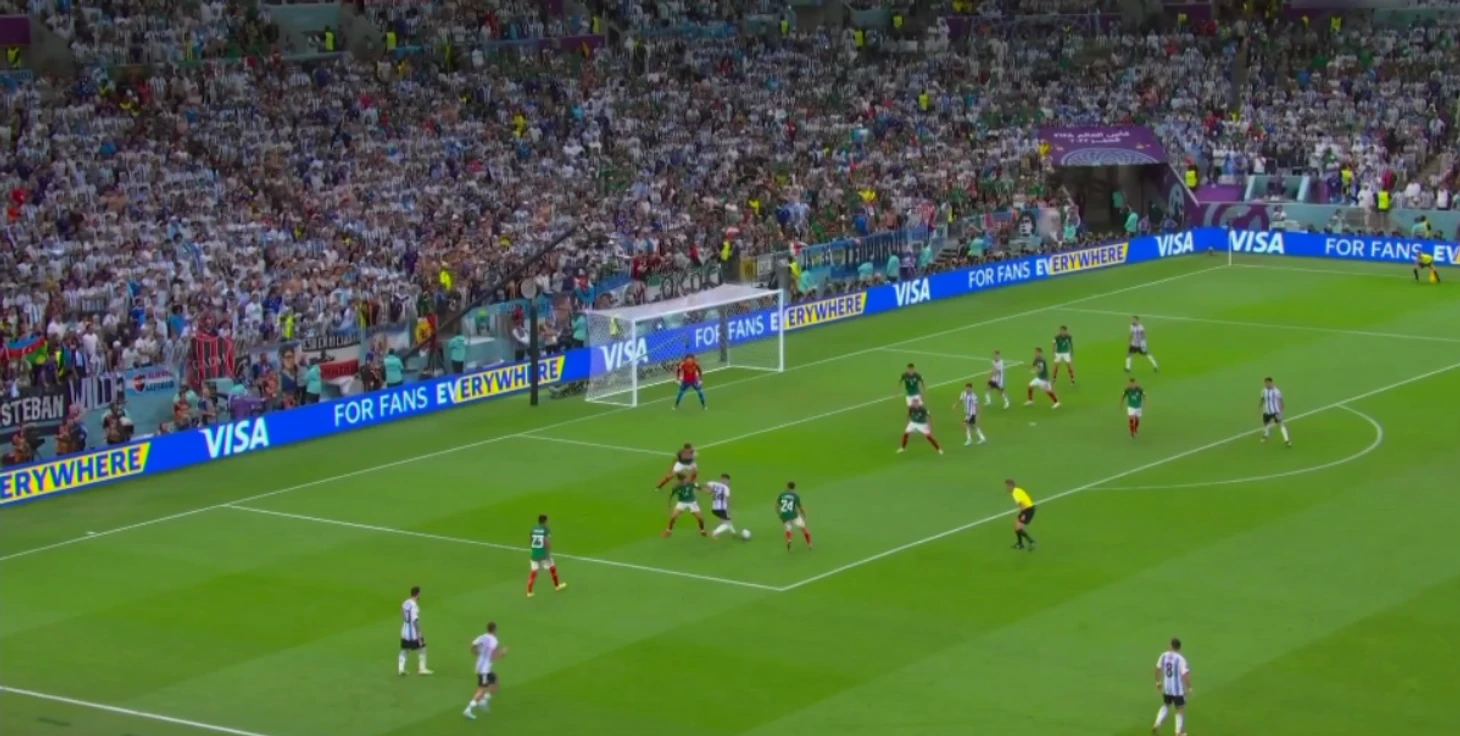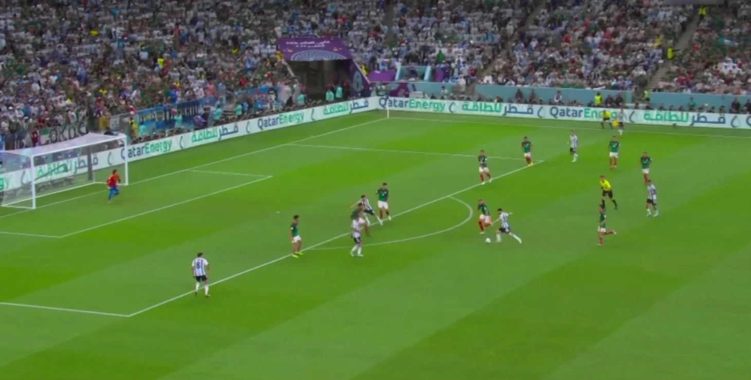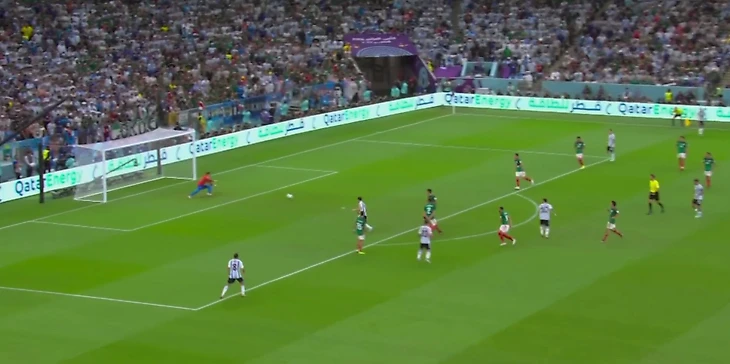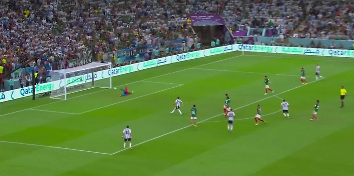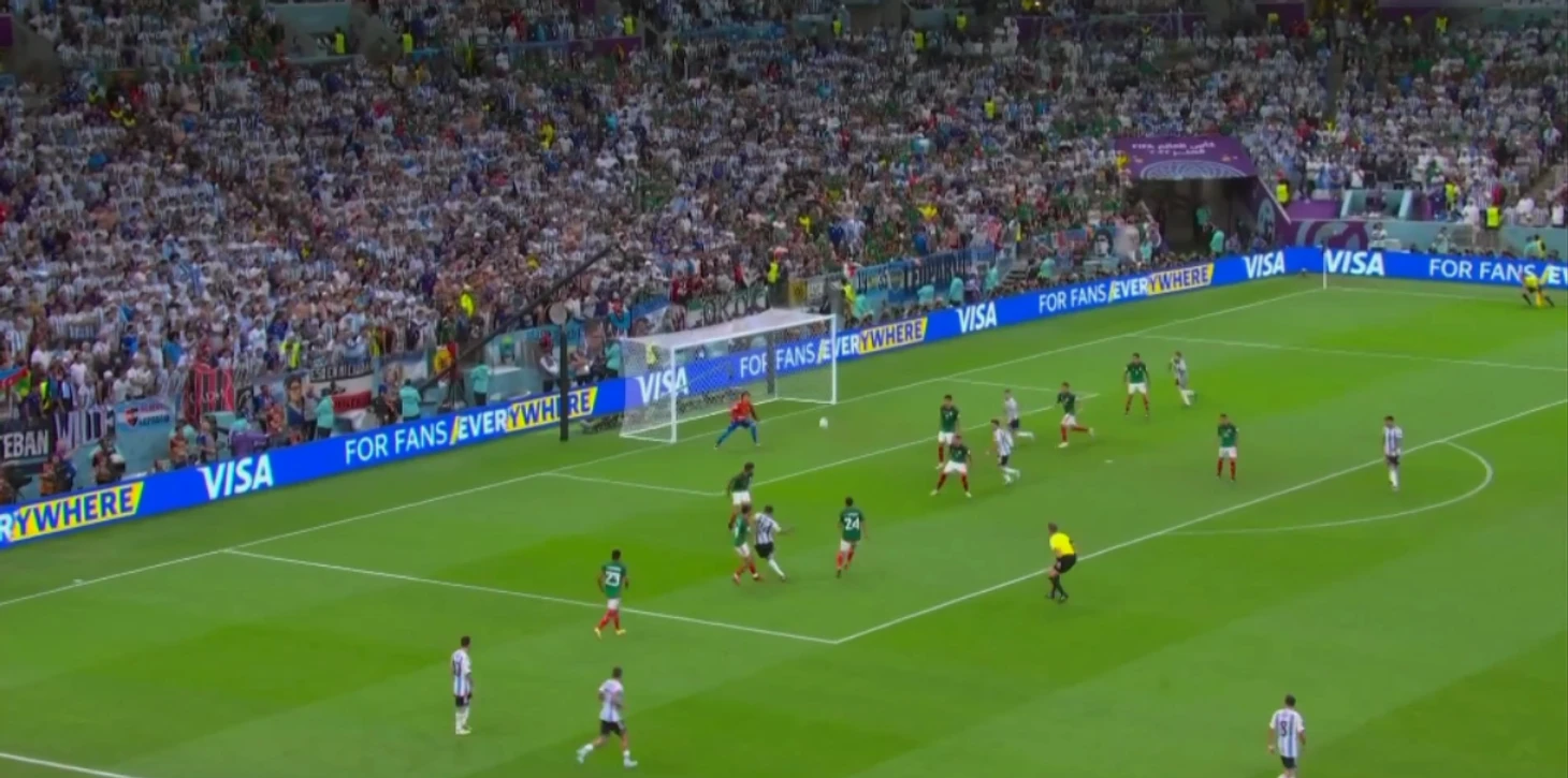 Аргентинец получил мяч от Ди Марии, чуть сблизился со штрафной и ударил по воротам. Мяч летел не слишком быстро, но так как перед Очоа было много игроков, среагировал он с небольшим опозданием. Справедливости ради, попал Месси практически идеально − бильярдно!