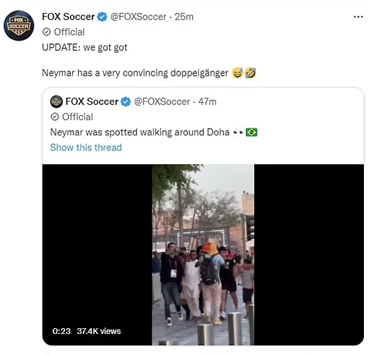 Когда же журналисты FOX Soccer осознали, что это никакой не Неймар, то признали высокое качество двойника. «У Неймара очень убедительный двойник», - написали они в следующем посте.