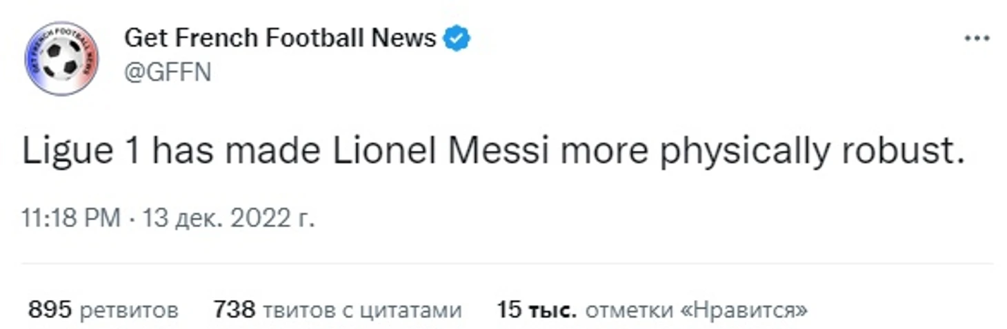 Французское издание Get French Football News утверждает, что своей формой Месси обязан своим пребыванием в Лиге 1, потому что он стал «физически более крепким».
