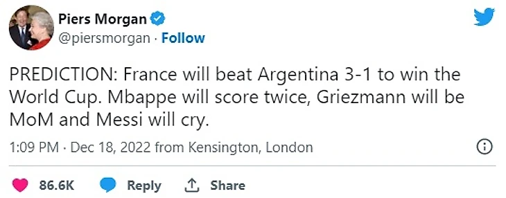 Перед финалом ЧМ Пирс Морган сделал свой прогноз. Половина сбылась, но журналист явно рассчитывал на на это
