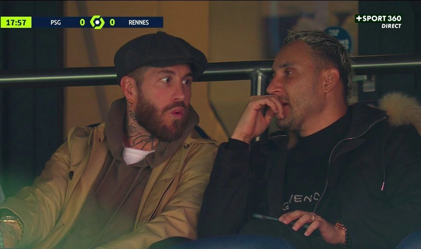 Костариканец сидит на трибунах с Серхио Рамосом, который не может играть из-за недавно полученного повреждения.
