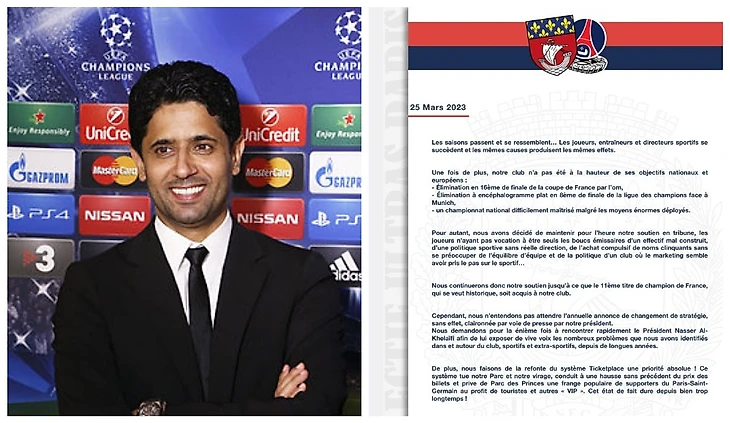 Мы не намерены ждать очередного объявления о смене стратегии, потому требуем скорой встречи в президентом клуба Нассером Аль-Хелайфи, чтобы рассказать ему лично о всех проблемах, которые мы видим».