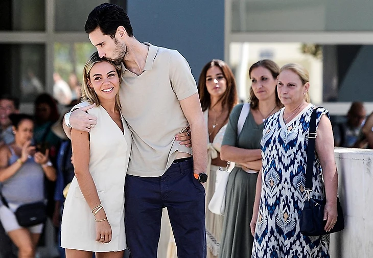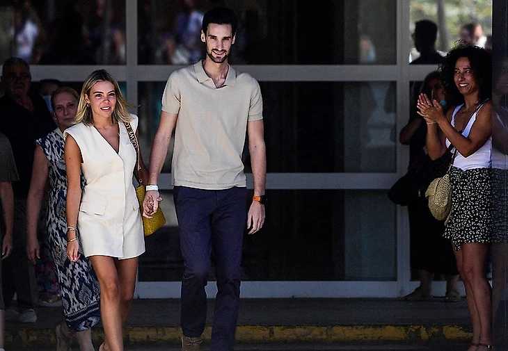 Из учреждения вратарь вышел вместе со своей женой, которая все это время была рядом с ним.