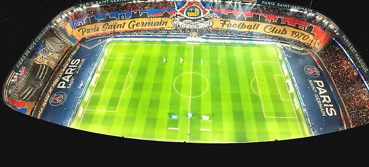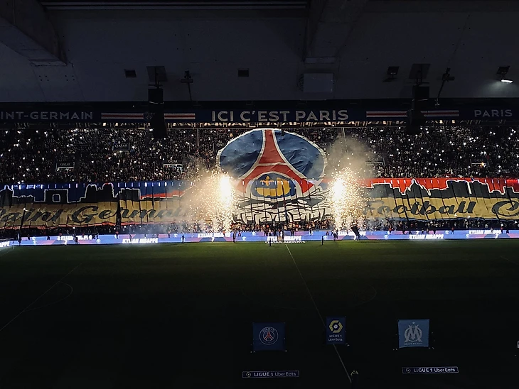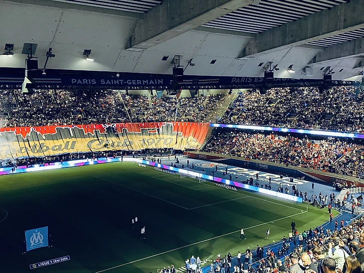 Чемпион Франции «ПСЖ» на домашней арене «Парк де Пренс» принимает извечного соперника по дерби − «Марсель». Болельщики хозяев мощно подготовились к игре, растянув большой баннер на несколько трибун.