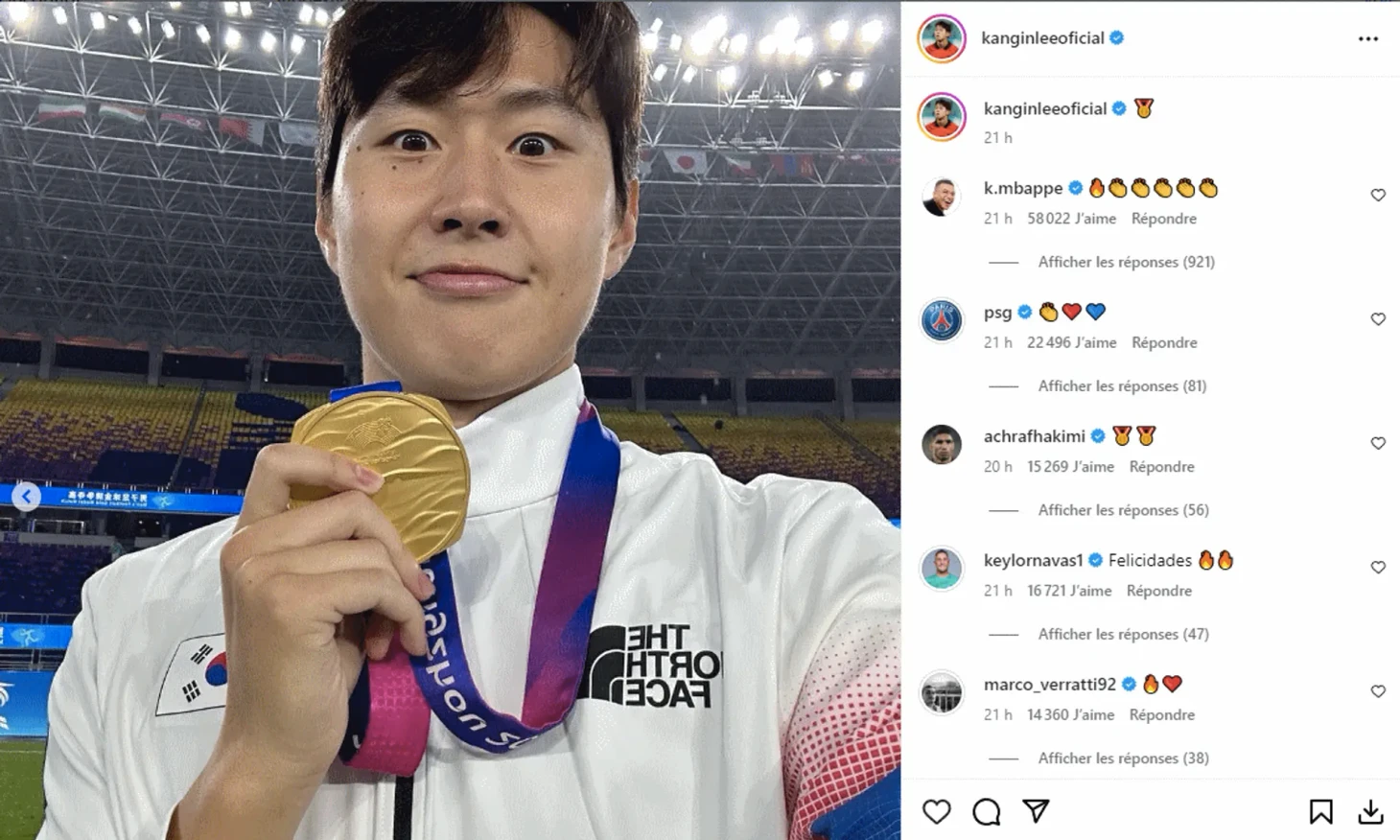Полузащитник нашел общий язык и с другими игроками столичного клуба. Бывшие и нынешние футболисты «ПСЖ» поздравили Ли с недавней победой на Азиатских играх.