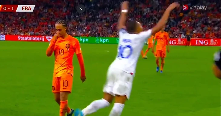 📸 Несите «Оскар»! Мбаппе талантливо спародировал падение Думфриса в матче сборных Франции и Голландии